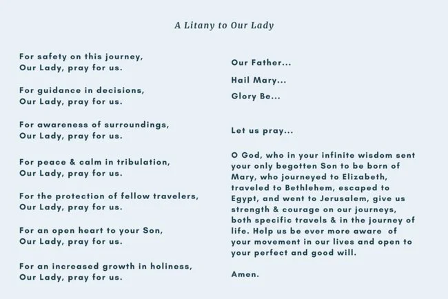I was asking for Mary’s intercession so much, I ended up writing a litany to the Blessed Mother. A “traveler’s litany” of sorts.